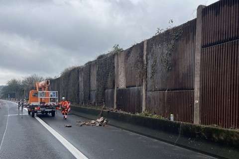 Vorübergehende Fahrbahnsperrung: Trümmerteile einer Lärmschutzwand fielen herab, A66, Bad Soden-Salmünster - Die Autobahnmeisterei und die Autobahnpolizei rückten am Dienstagmorgen, gegen 10.30 Uhr, zu einer Gefahrenstelle auf die Autobahn 66 bei Bad-Soden-Salmünster aus, da dort Teile einer Lärmschutzwand auf die Fahrbahn gefallen waren.