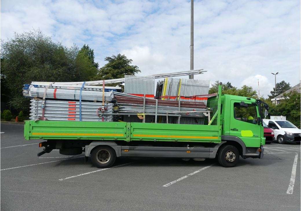 LKW auf der A60 gestoppt: Gerüstbauer mit über 5 Tonnen Ladung zu viel unterwegs, Wörrstadt - Die auf der offenen Ladefläche des LKW getürmten Gerüstteile ragten auffällig hoch hinaus und stachen damit einem Team des Kontrolltrupps "Gewerblicher Güter- und Personenverkehr" der Verkehrsdirektion Mainz in´s Auge. Der LKW fuhr leicht schief heute gegen 09:50 Uhr bei Mainz auf der A60, wo er im Bereich Mainz-Weisenau von der Autobahn gelotst und kontrolliert werden konnte.