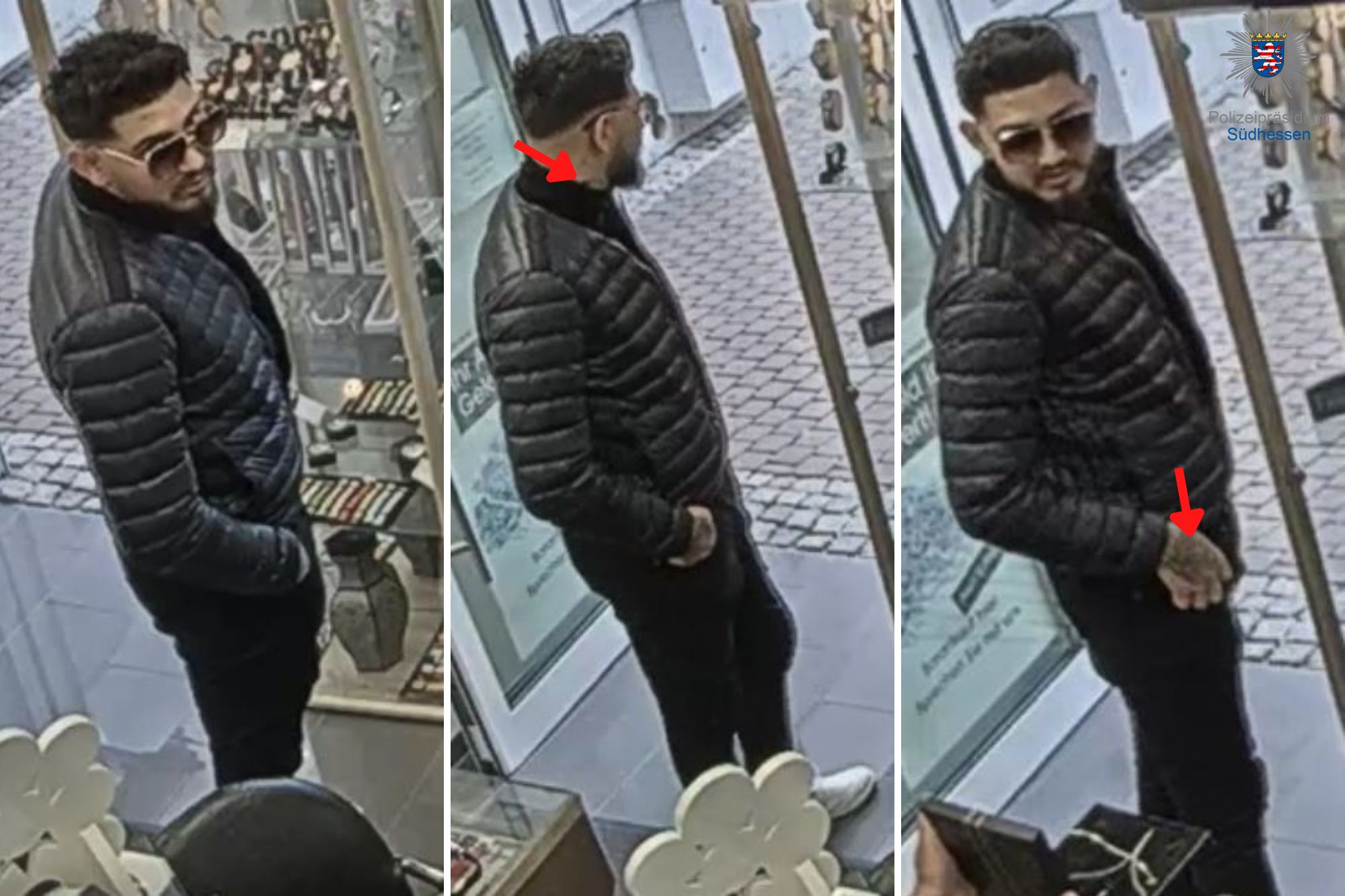 Öffentlichkeitsfahndung nach Schmuck-Diebstahl - Wer kann Hinweise zum Tatverdächtigen geben? Gemeinsame Pressemeldung der Staatsanwaltschaft Darmstadt und des Polizeipräsidiums Südhessen Nachdem ein Mann bereits am Donnerstag, den 15. September 2022 Schmuck aus einem Juweliergeschäft in der Bahnhofstraße erbeutet hat, wenden sich Staatsanwaltschaft und Polizei mit Bildern des Täters aus einer Überwachungskamera an die Öffentlichkeit.