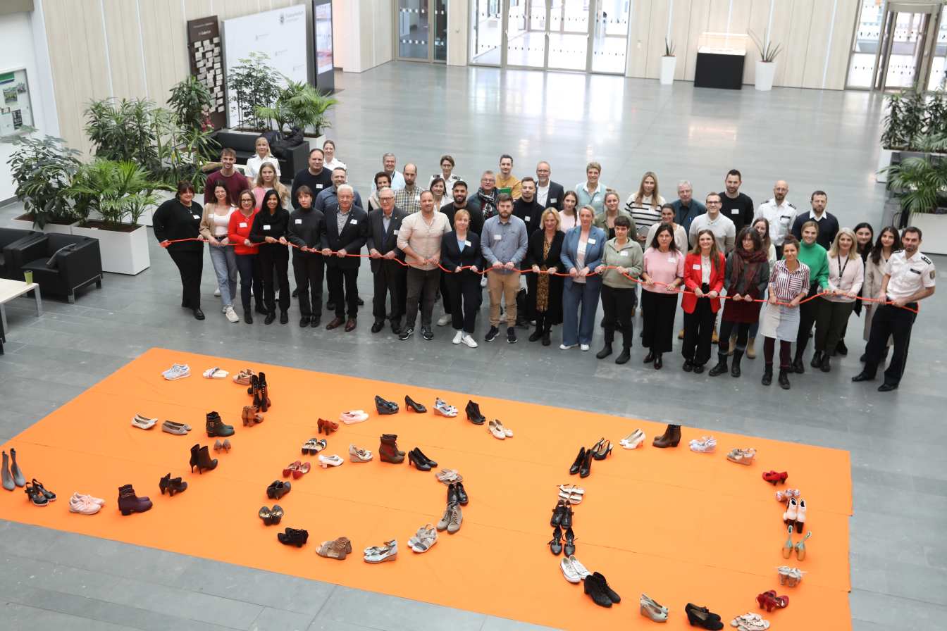 Während beider Aktionstage waren im Atrium Damenschuhe auf einem orangefarbenen Untergrund ausgestellt, die die Zahl 360 formten. Diese symbolisierten die traurige Zahl von 360 getöteten Frauen, also Morden an Frauen durch ihre Ex-Partner oder Partner, weil sie Frauen sind. Damit stirbt aus diesem Grund nahezu jeden Tag eine Frau. Durch die Schuhe wurde deutlich, dass hinter jeder dieser Taten ein Mensch, eine Frau mit Leben, Zielen, Träumen und Wünschen steht. Alle Beteiligten waren sich einig, dass es eine sehr gelungene Veranstaltung war und der gute Austausch weiterhin ein wichtiger Bestandteil ist, um den betroffenen Frauen auch in Zukunft bestmöglich zu helfen.